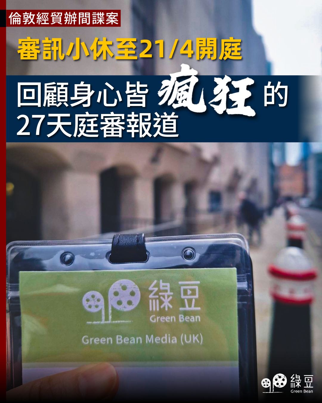這27天,壓力山大,因為《綠豆》明白,我們背負著的,是眾多未能親身聽審,或沒有機會於在地媒體讀到這則新聞的讀者,而明明這新聞關乎眾多香港人的自由。